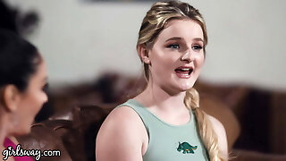 Big Tits Big Ass Super Super-fucking-hot Blonde MILF invites the Skinny Small Tits Baby Sitter into a Threesome With Wild and Horny Fuck-a-thon