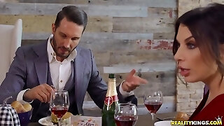 Threesome at a Japanese restaurant with a busty hotty