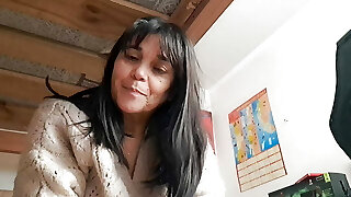 Real couple passionately fucking my preggie wife on a table. Passion, romance, love and intense