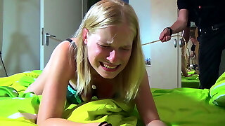 Tied to a pole ball busted, cropped, whipped & jerked. Femdom ballkicking and cbt. Preview 5 of10min