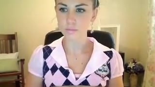 Dark haired Russian teenager plays with her super big boobs on webcam