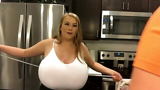 Curvy babe Natasha Nice fucks & rubs chisel with her huge boobies