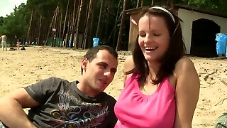 Breathtaking brunette cougar with hot booty getting screwed hardcore at the beach outdoor