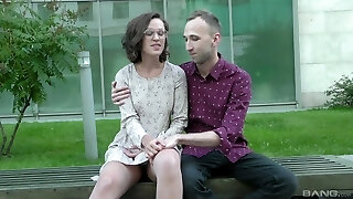 Lena Paul is a uber-cute babe with glasses curious about a cock
