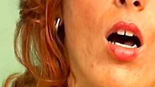 Crimson haired kinky nympho Amber Dawn feels extraordinaire while fingering herself